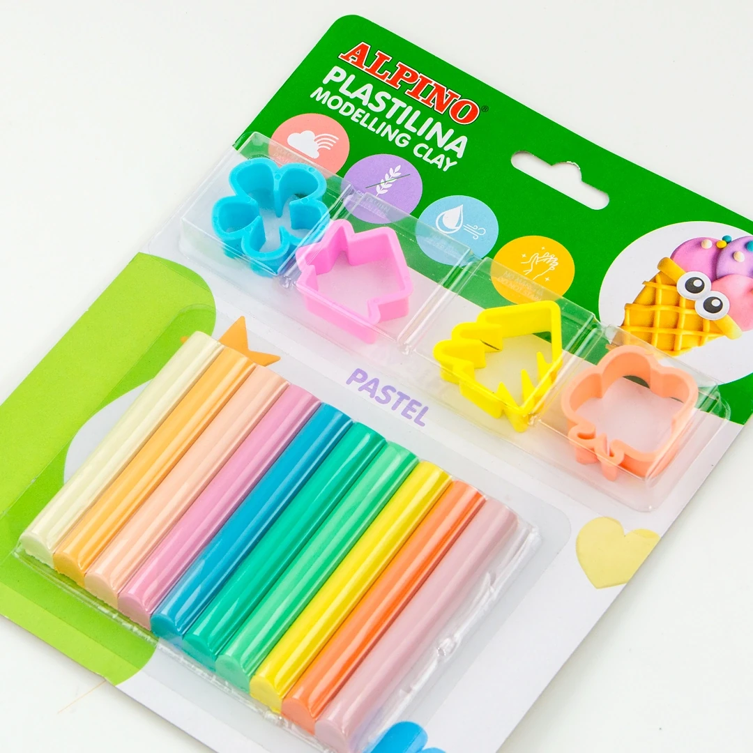 Blister de pâte à modeler Alpino 10 couleurs pastel avec outils de modelage