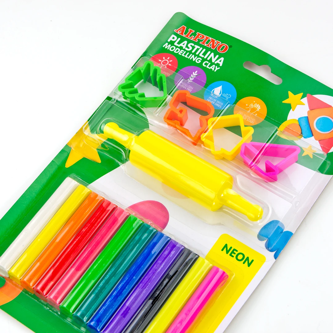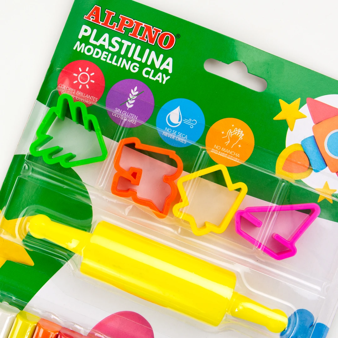 Blister de pâte à modeler Alpino avec 12 bâtonnets, rouleau et moules